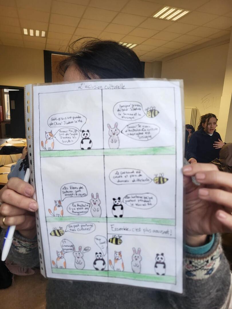 À travers ces ateliers, les élèves poursuivent leur travail autour des thèmes liés à l’inclusion, en mobilisant à la fois leurs compétences artistiques, leur réflexion critique et leur capacité à travailler de manière collaborative.
